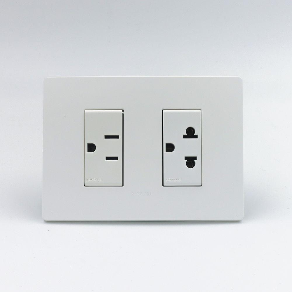 TOMACORRIENTE DOBLE (1 AMERIC + 1 UNVRSL CN TIERRA) SINTHESI S33 PLACA BLANCA MATE Y DADO S22 BLANCO