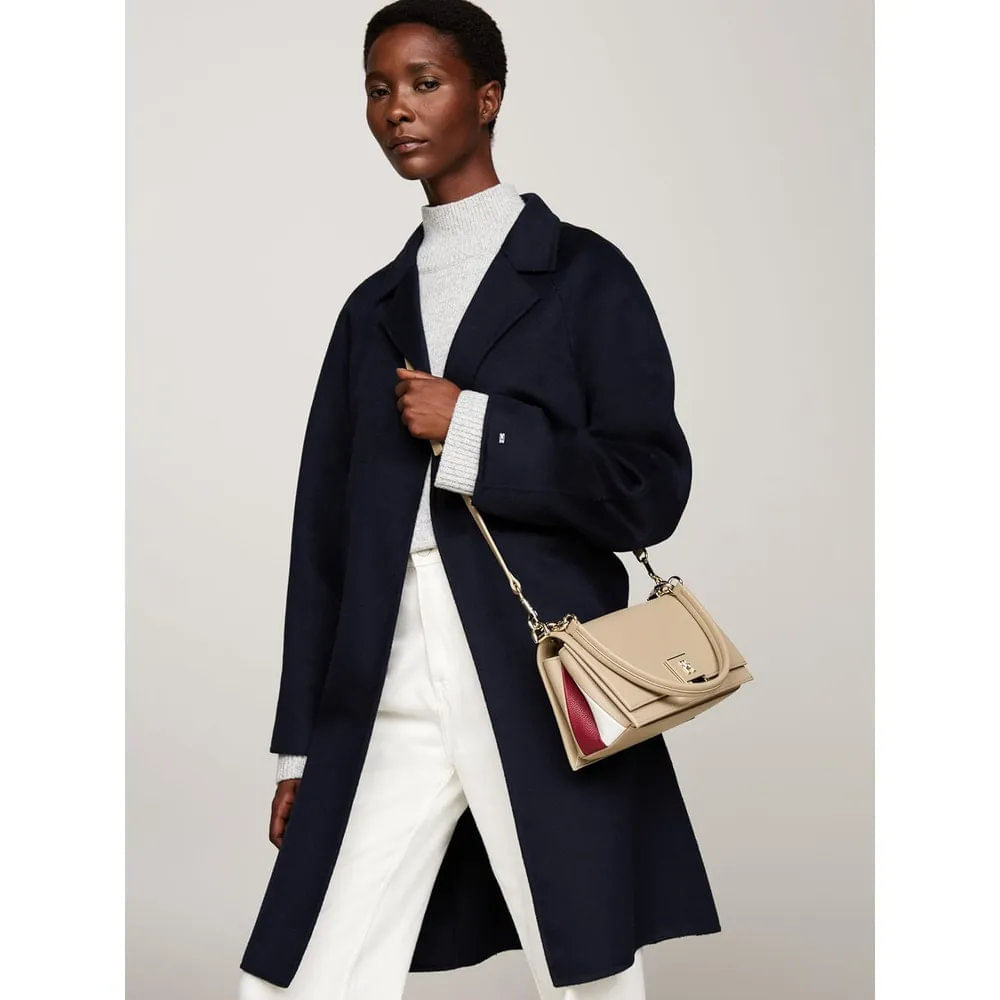 Tommy Hilfiger | Bolso de Hombro de Cuero con Correa Crossbody Removible | Beige