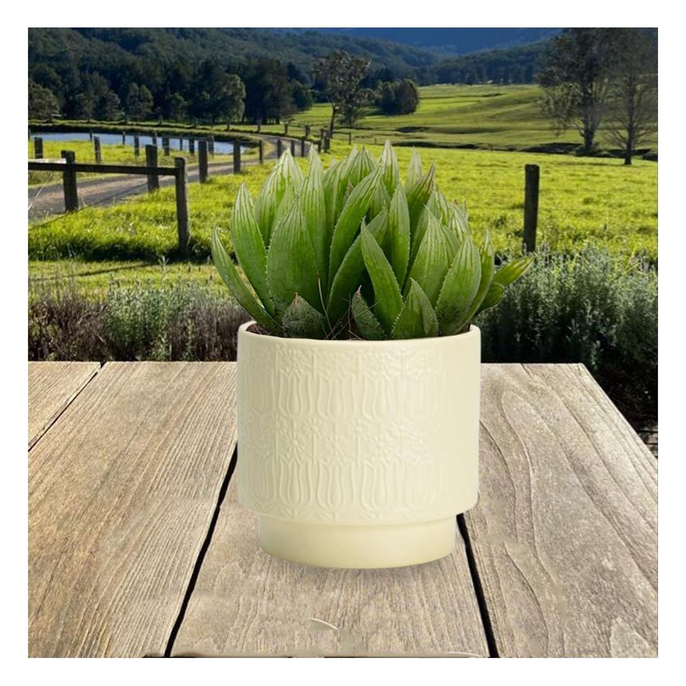Vasija Cilindro Ceramica 13x13cm Crema Para Tulipanes Flores Festivo Y+Post It