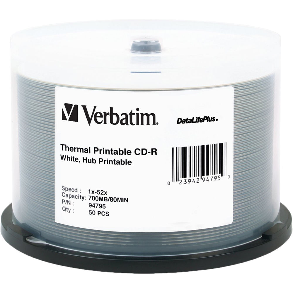 Verbatim CD-R 52x Grabable Una Vez DataLifePlus Blanco Térmico Imprimible, Disco Compacto Imprimible - 395172-REG