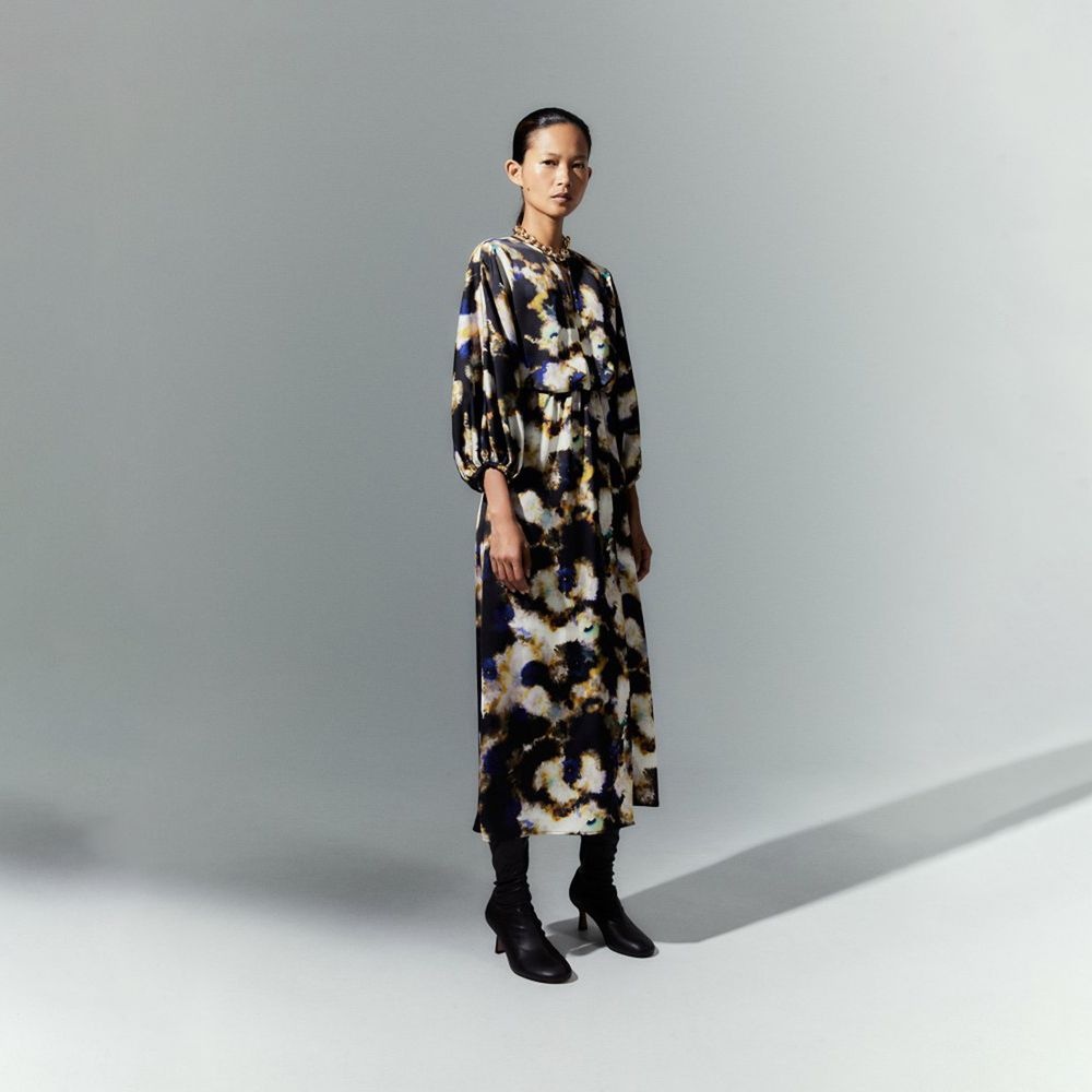Vestido Largo Mujer Sfera Manga Larga Ablusado P Azul