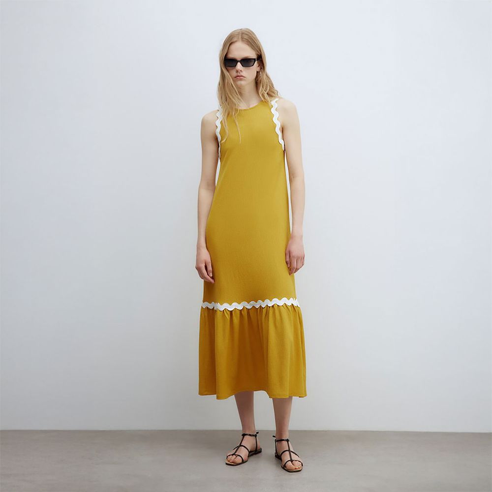 Vestido Mujer Sfera Bambula Ondas Mostaza