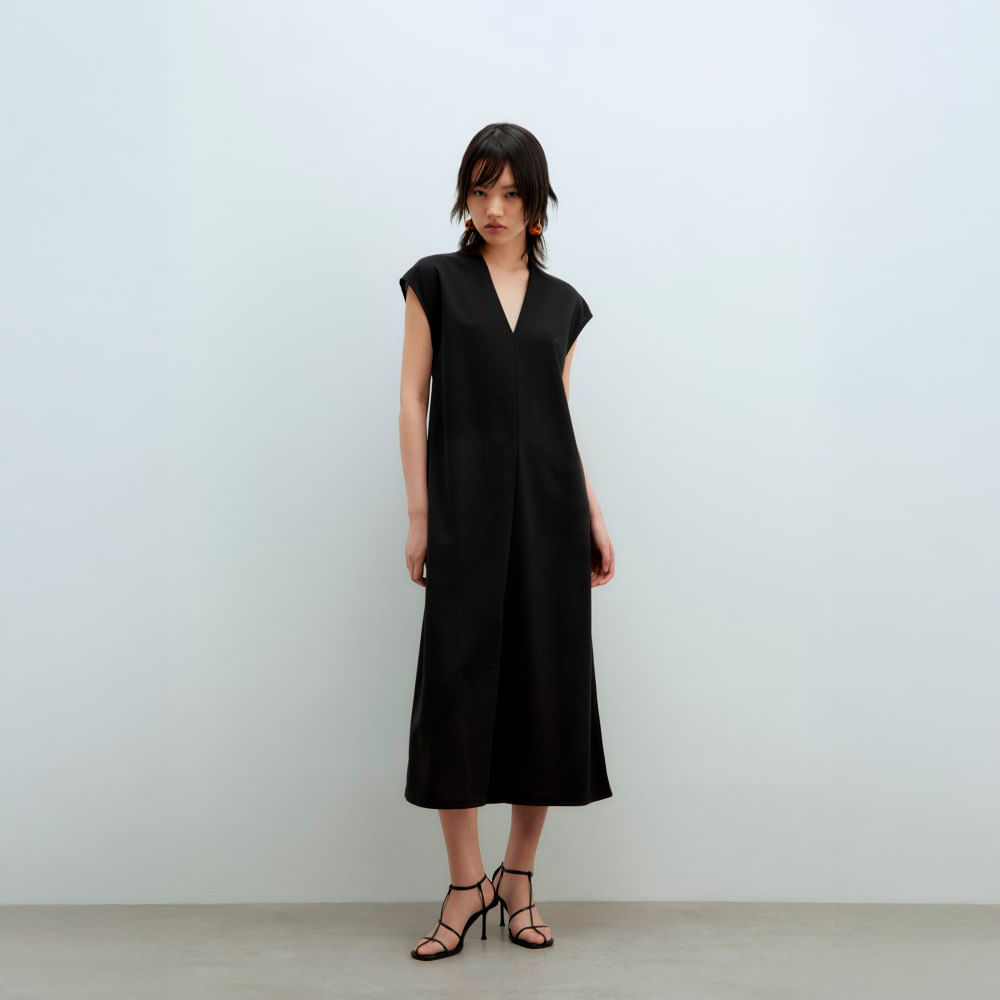 Vestido Mujer Sfera Basico Efecto Lino Lis Negro