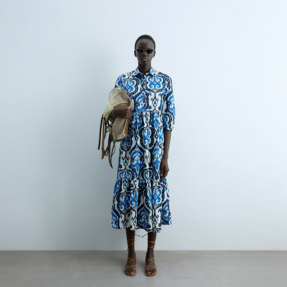 Vestido Mujer Sfera Camisero Estampado Azul Oscuro