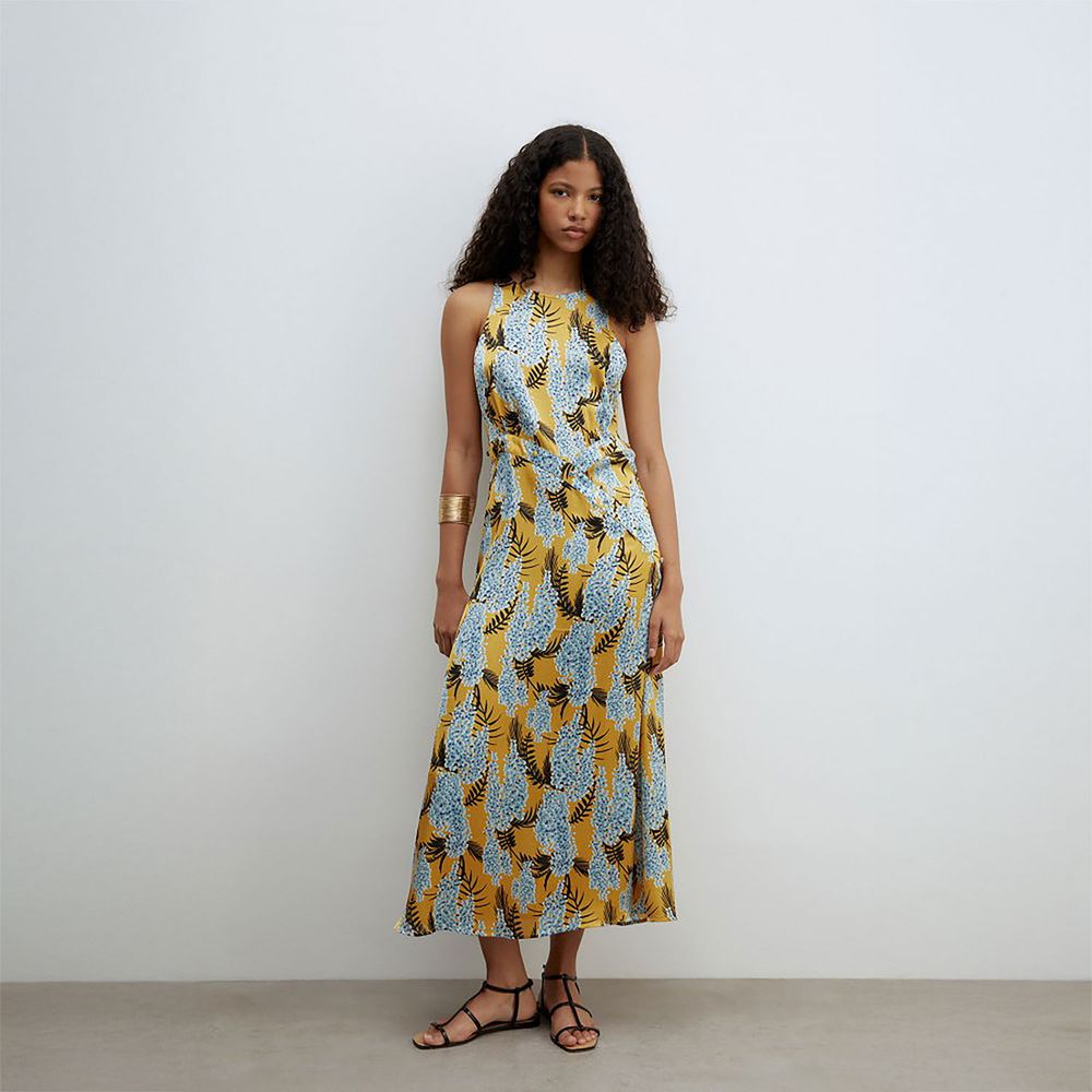 Vestido Mujer Sfera Halter Botones Mostaza