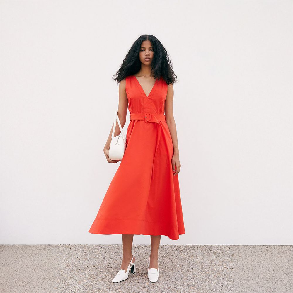 Vestido Mujer Sfera Popelin Cinturon Rojo
