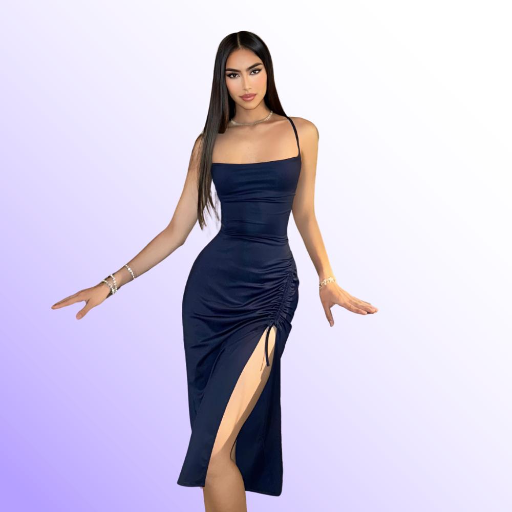 Vestido Satin LicradoTania Color Azul Oscuro