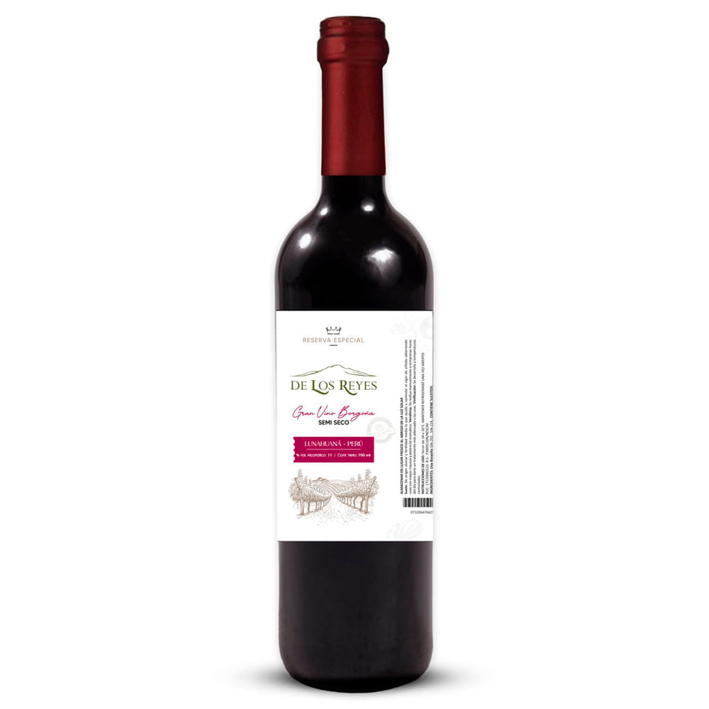 Vino Tinto DE LOS REYES Borgoña Semi Seco Botella 750ml
